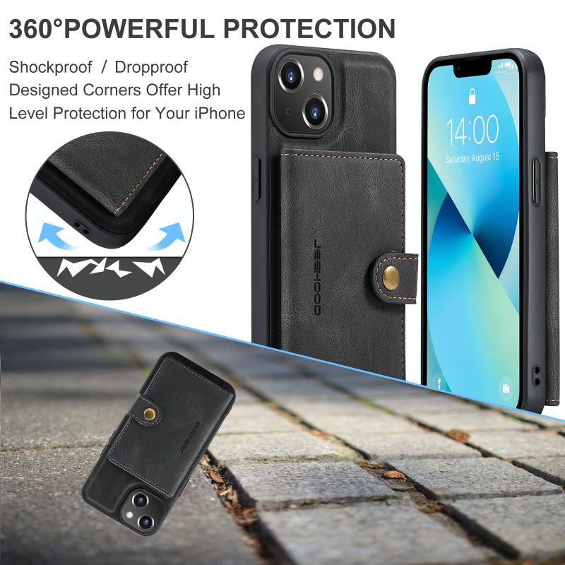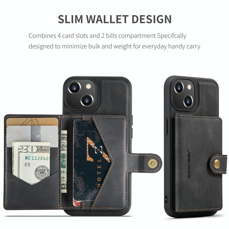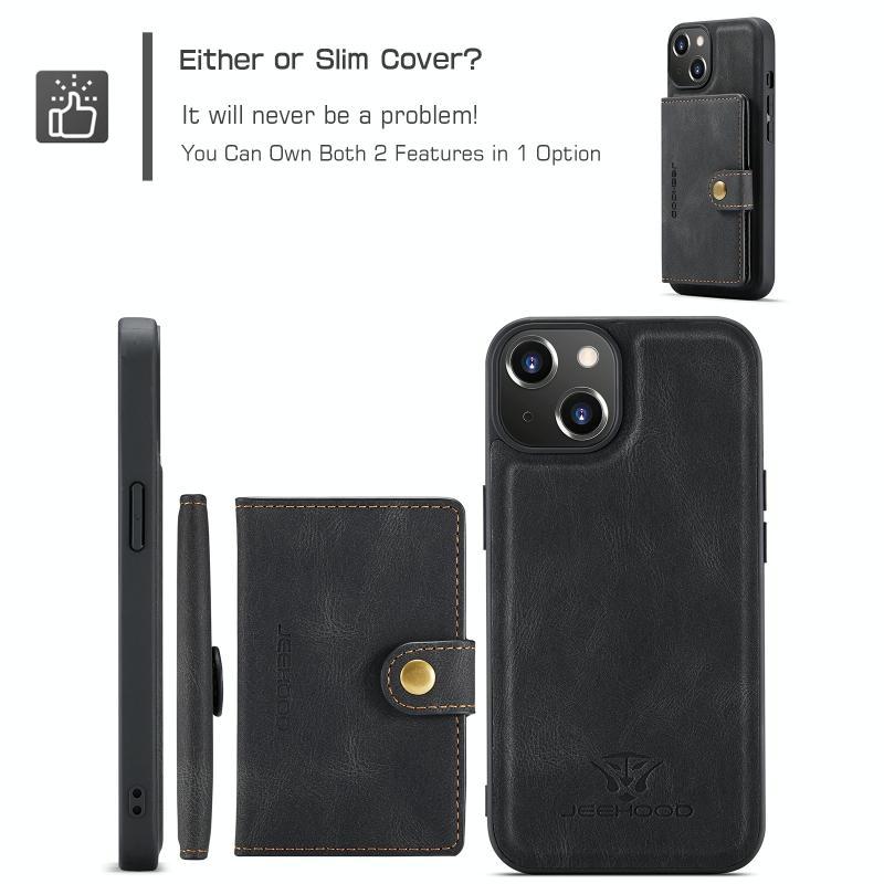 For iPhone 15 JEEHOOD Retro Magnetic Detachable Leather Phone Case(Black) (JEEHOOD)