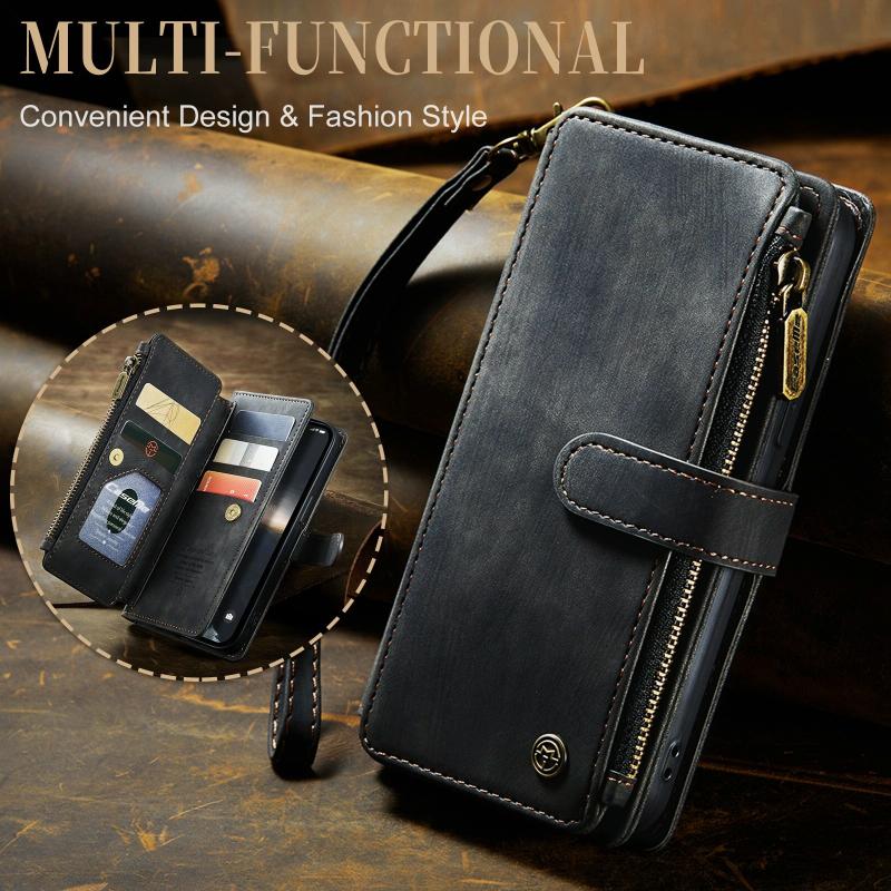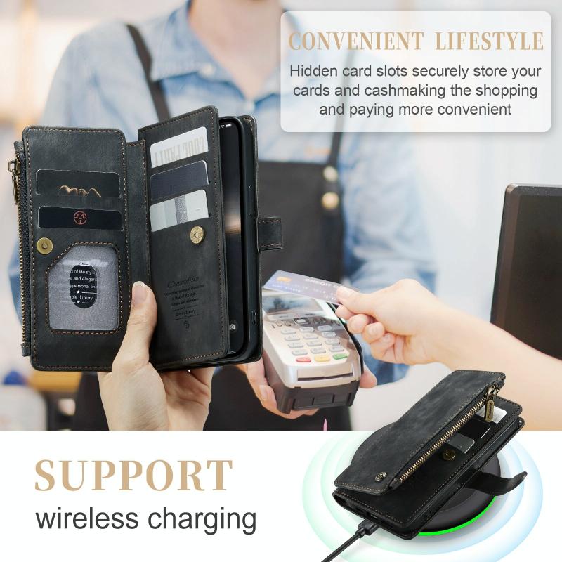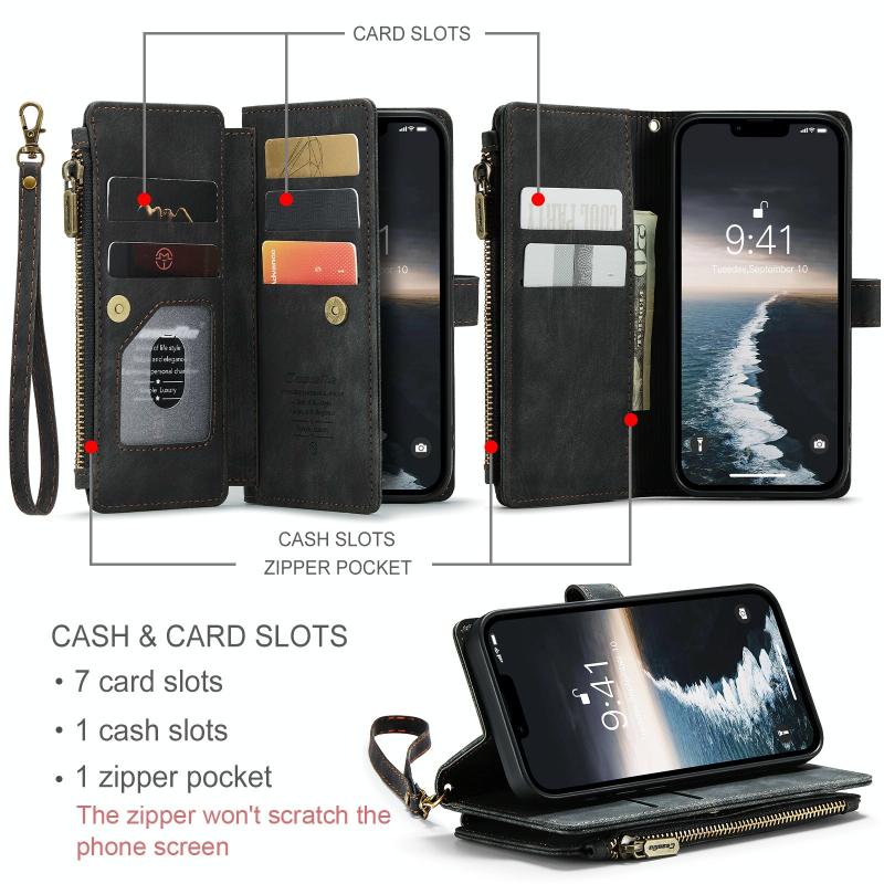6. 10 card slots + 1 wallet position + 1 zipper bag (actually based on the picture)