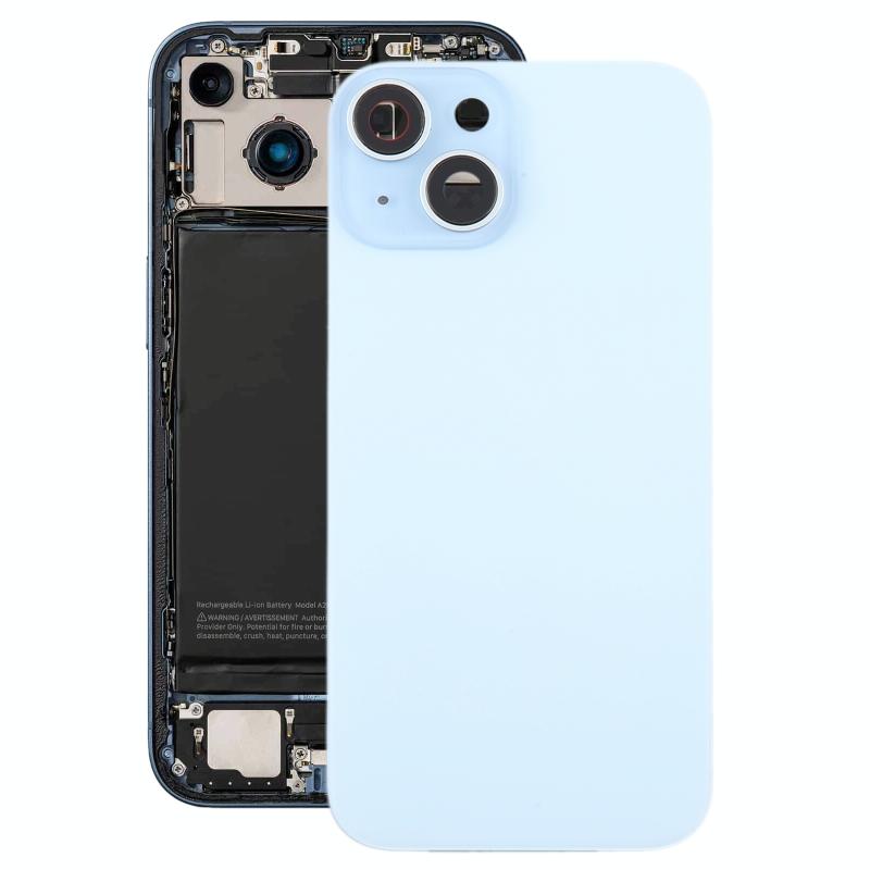 For iPhone 15 Plus Glass Battery Back Cover with Camera Lens Cover(Blue)