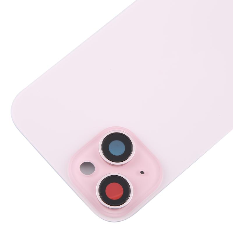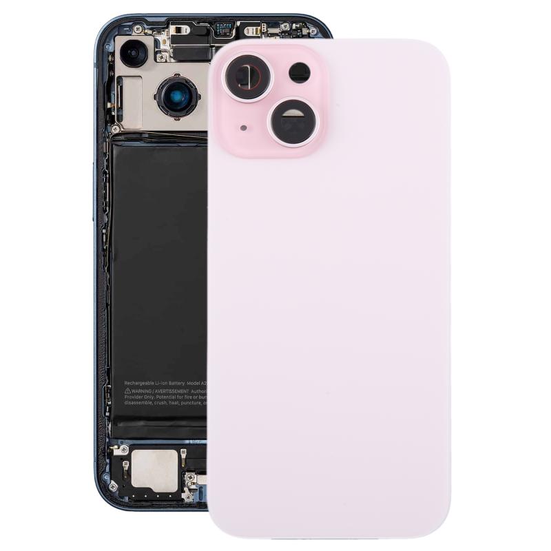 For iPhone 15 Plus Glass Battery Back Cover with Camera Lens Cover(Pink)