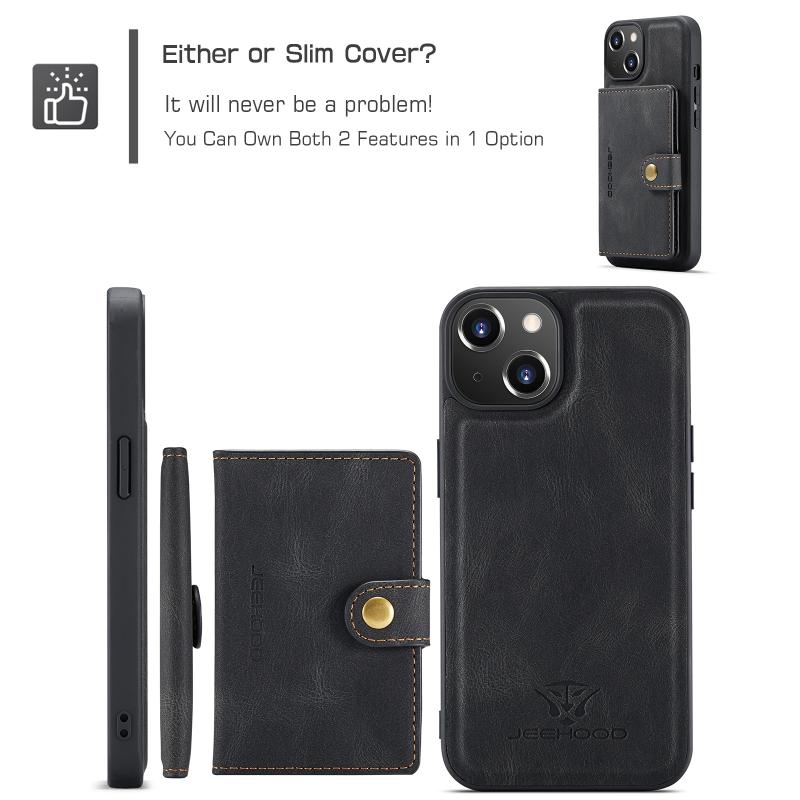 For iPhone 15 Plus JEEHOOD Retro Magnetic Detachable Leather Phone Case(Black) (JEEHOOD)