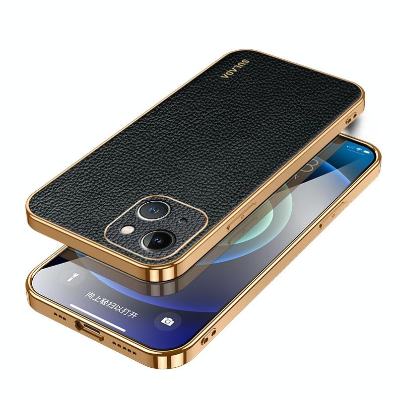 For iPhone 15 Plus SULADA TPU + Litchi Texture Leather Phone Case(Black) (SULADA)