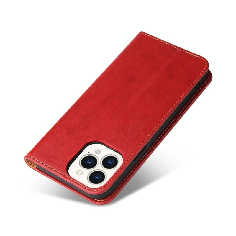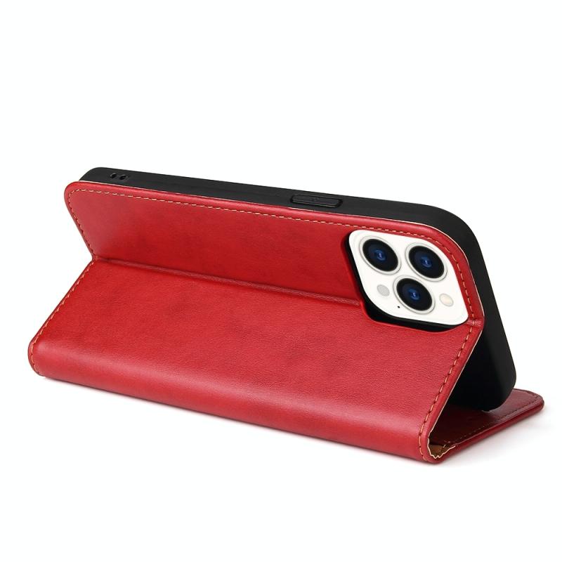 For iPhone 15 Pro Fierre Shann PU Genuine Leather Texture Phone Case(Red) (FIERRE SHANN)