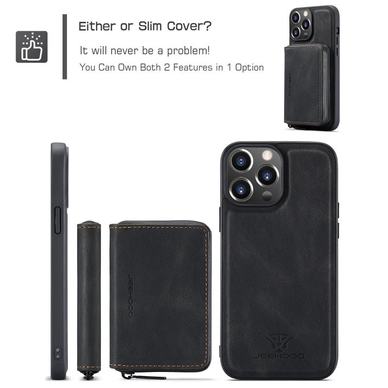 For iPhone 15 Pro JEEHOOD Magnetic Zipper Wallet Leather Phone Case(Black) (JEEHOOD)