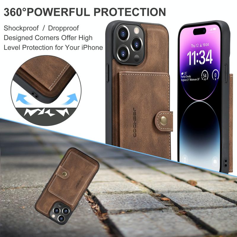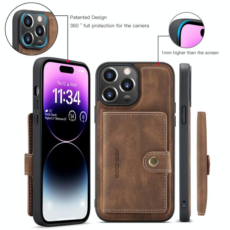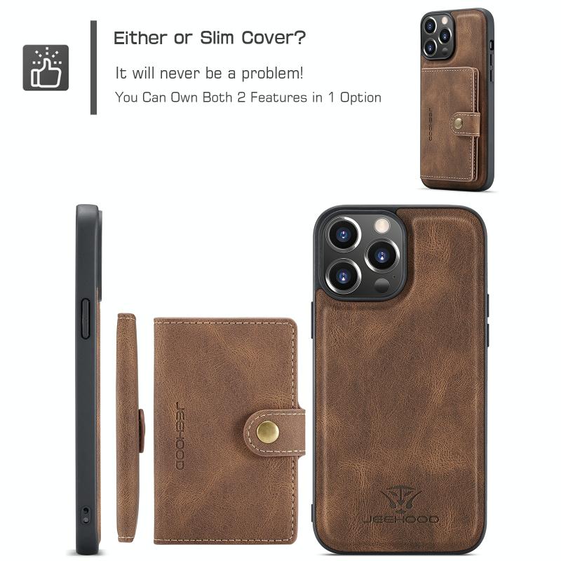 For iPhone 15 Pro JEEHOOD Retro Magnetic Detachable Leather Phone Case(Brown) (JEEHOOD)