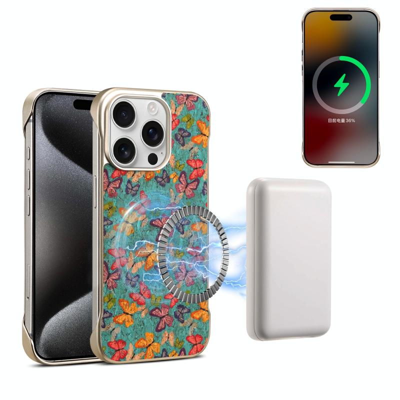For iPhone 15 Pro Max Denior A18 Paint MagSafe Phone Case(Butterflies) (Denior)