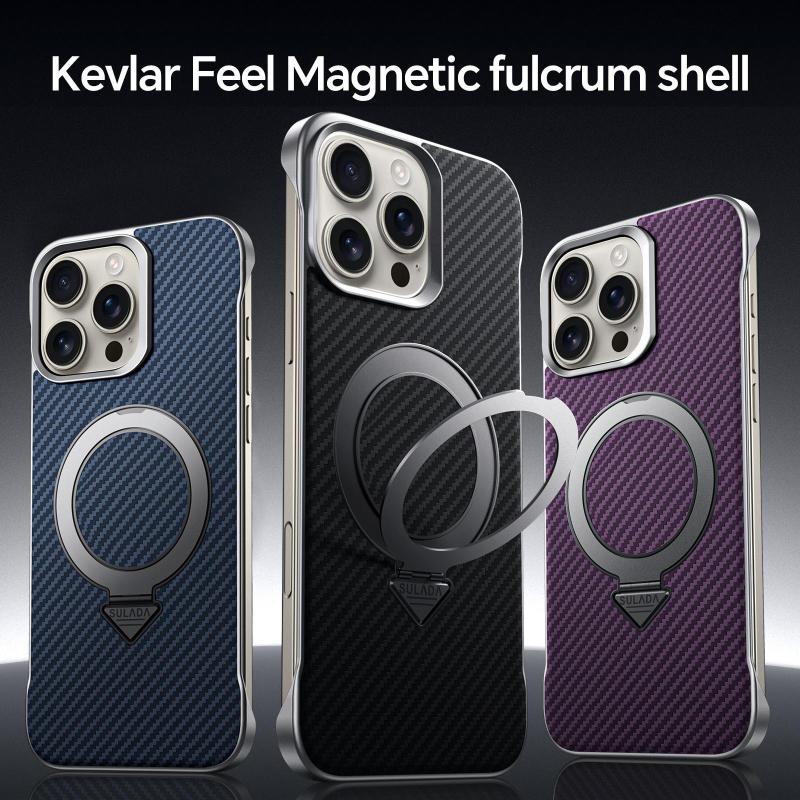 For iPhone 15 SULADA Kevlar Texture MagSafe Magnetic Holder Phone Case(Brown) (SULADA)