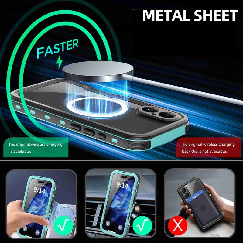 For iPhone 16 Plus RedPepper IP68 Waterproof Triple-proof MagSafe Phone Case(Black Blue) (RedPepper)