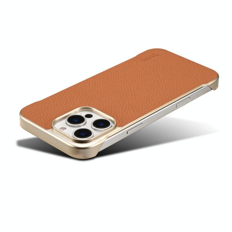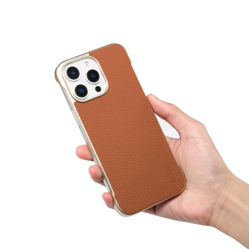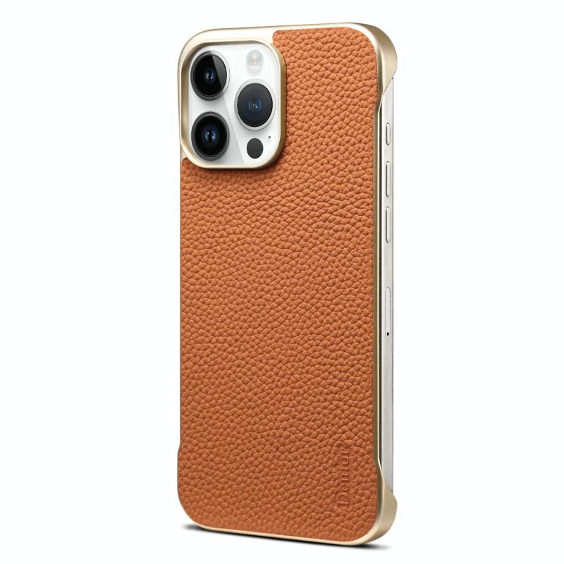 For iPhone 16 Pro Denior A20 Genuine Leather Litchi Texture MagSafe Frameless Phone Case(Brown) (Denior)