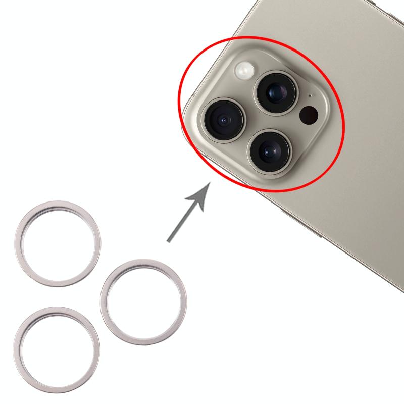For iPhone 16 Pro Max 3pcs/set Rear Camera Glass Lens Metal Outside Protector Hoop Ring (Titanium Color)