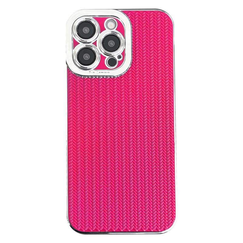 For iPhone 16 Pro Max Electroplated Silver Edge Grain Texture TPU Phone Case(Rose Red)