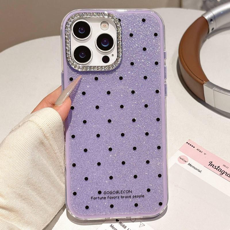 For iPhone 16 Pro Max Glitter Powder Dots Pattern Rhinestone Large Hole Phone Case(Purple)