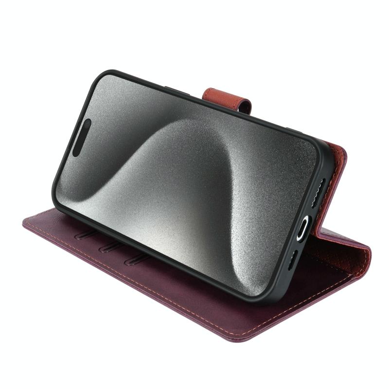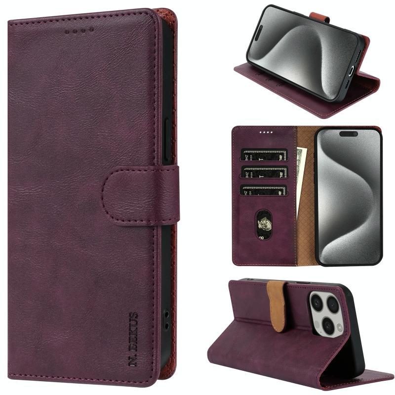 For iPhone 16 Pro N.BEKUS CSJ-P1 Solid Color Leather Phone Case(Wine Red) (N.BEKUS)