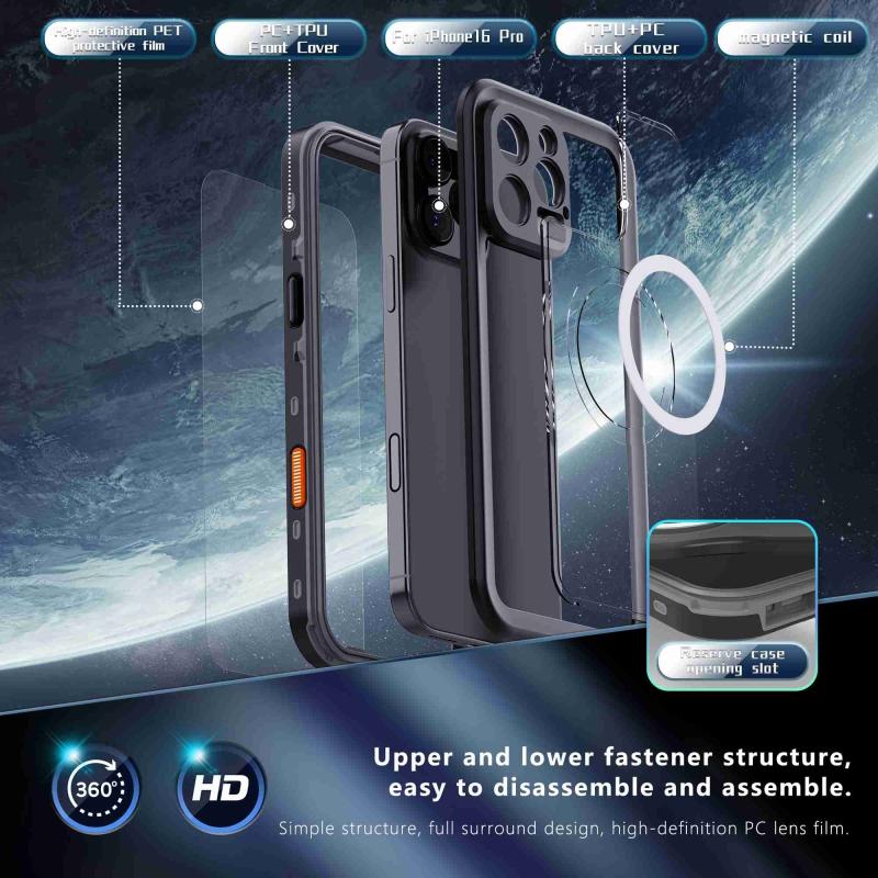 For iPhone 16 Pro RedPepper Transparent Dot IP68 Waterproof Triple-proof MagSafe Phone Case(Black Dark Grey) (RedPepper)