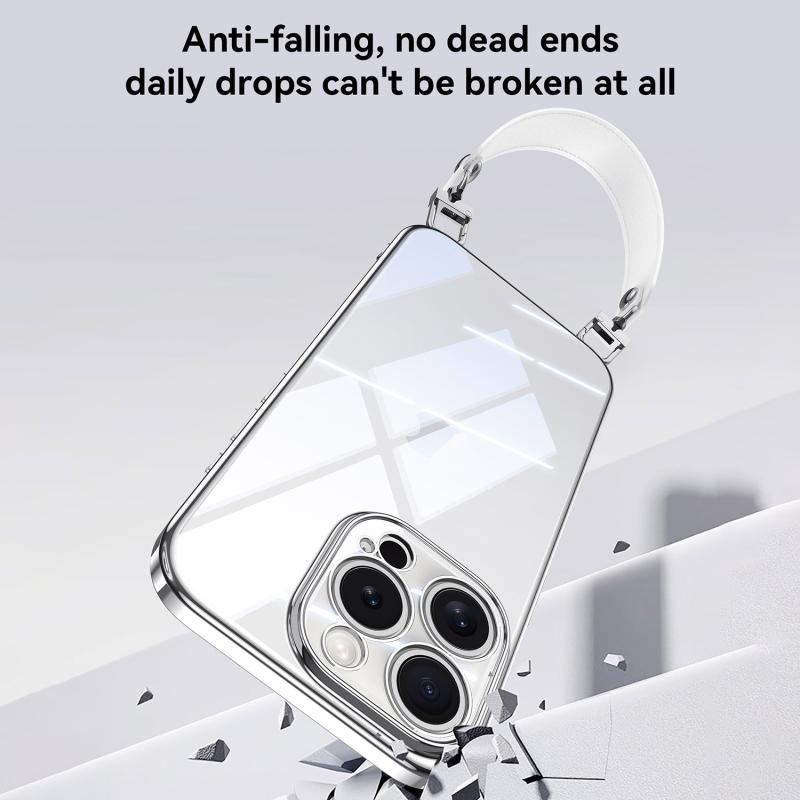 For iPhone 16 SULADA Electroplated Clear TPU Soft Frame Phone Case with Wrist Strap(Silver) (SULADA)