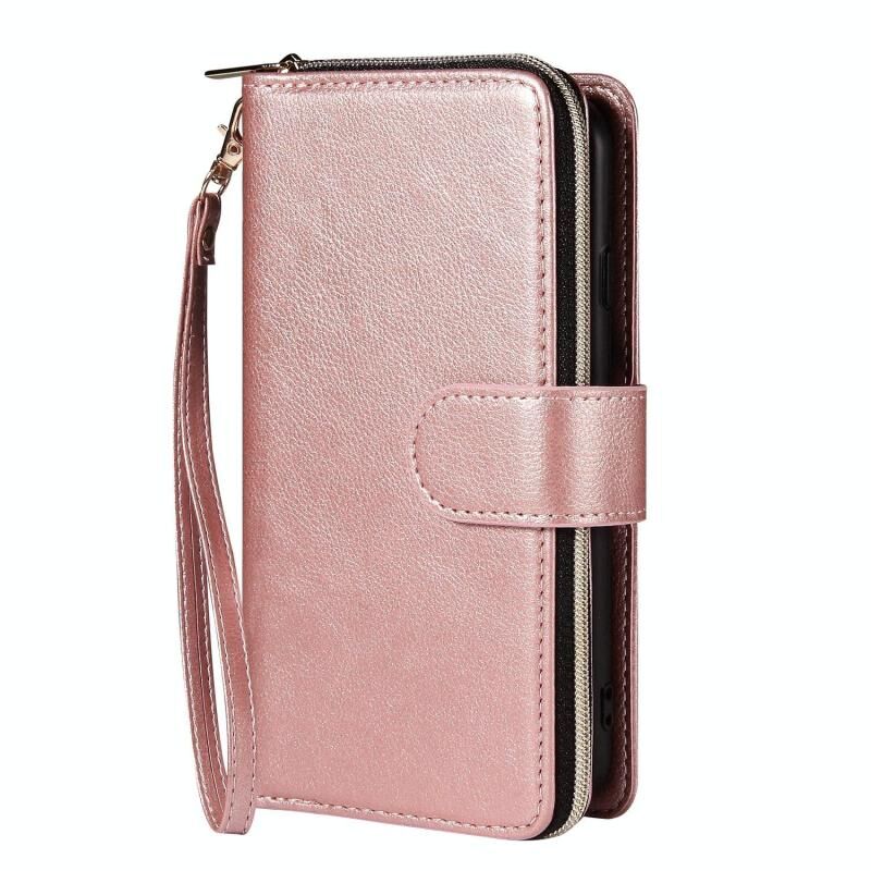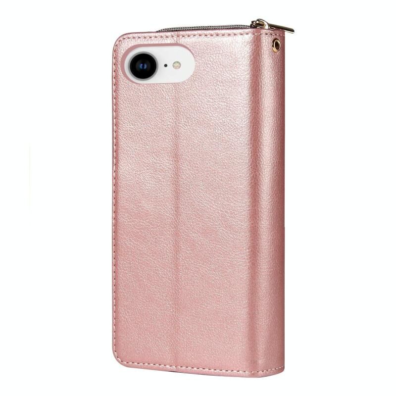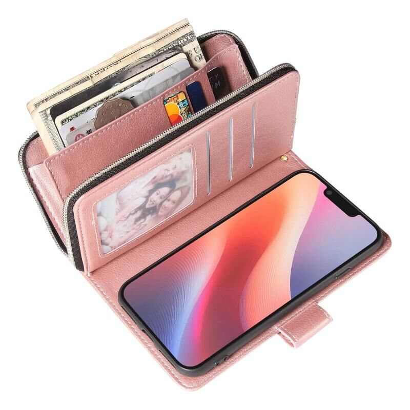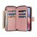 For iPhone 16e 9 Card Slots Zipper Wallet Bag Leather Phone Case(Rose Gold)
