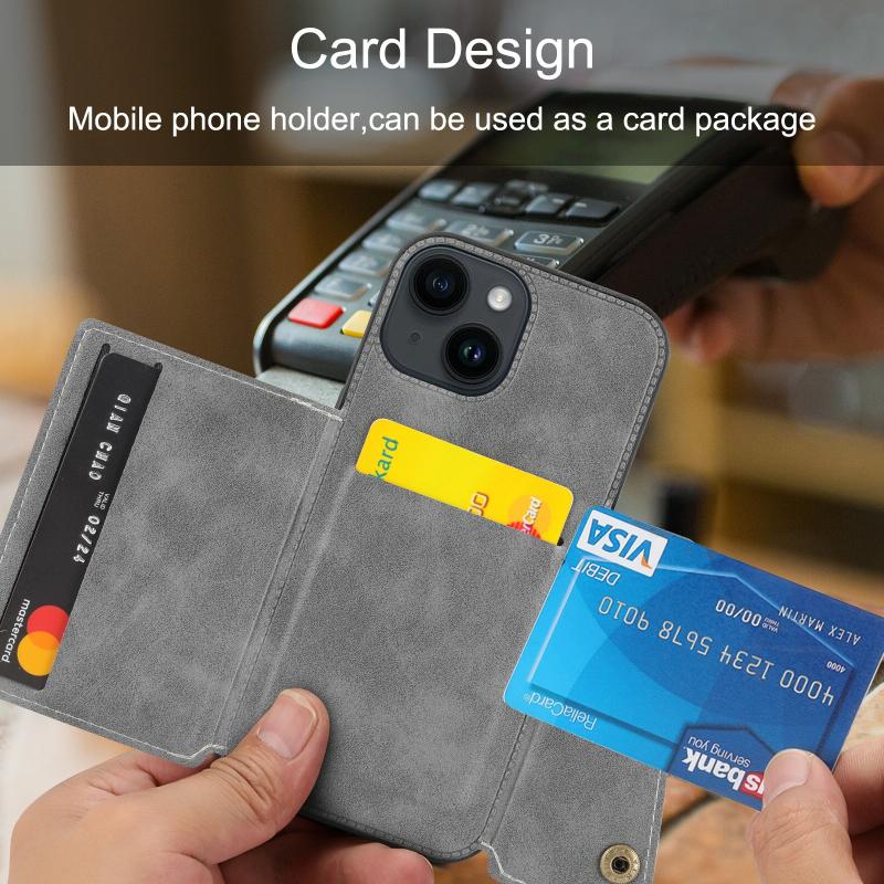 For iPhone 16e Double Buckle Card Slots PU + TPU Phone Case(Black)