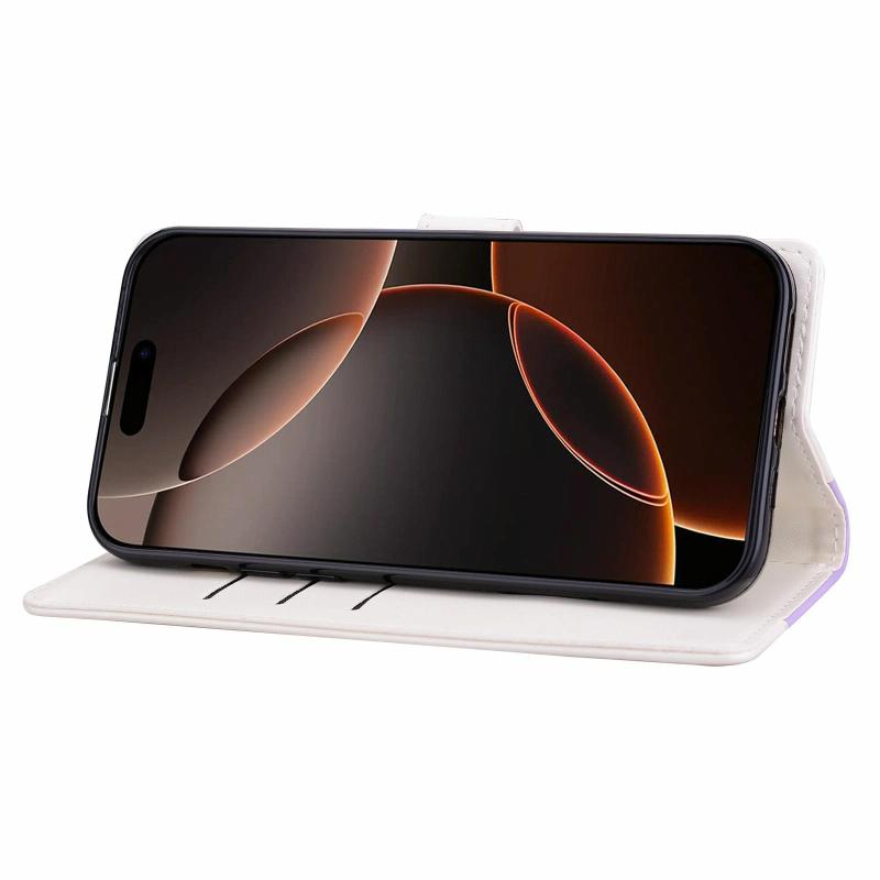 For iPhone 16e Embossed Two-Color Leather Phone Case(Purple White)
