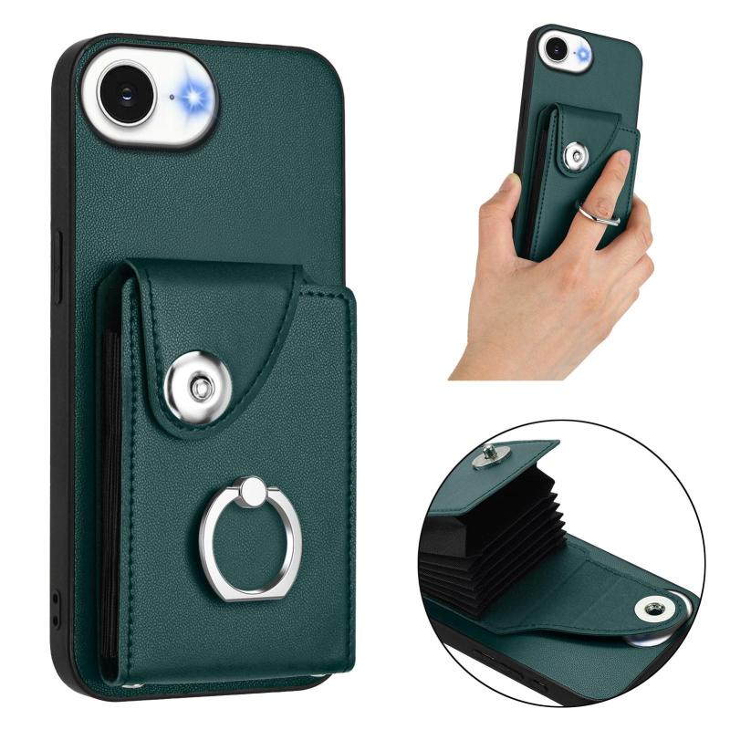 For iPhone 16e Organ Card Bag Ring Holder Phone Case(Green)