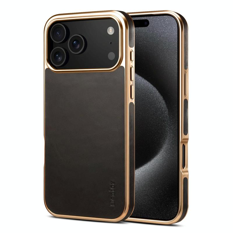 For iPhone 17 Pro Denior Oil Wax Leather Electroplating Phone Case(Black) (Denior)