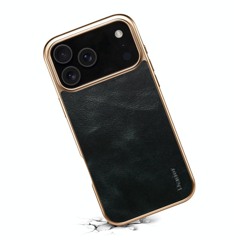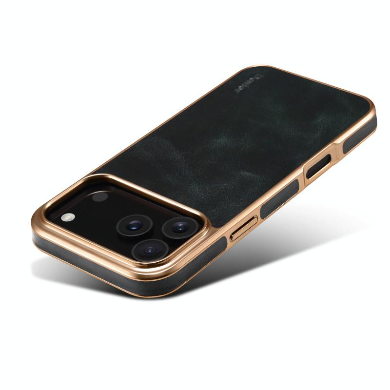 For iPhone 17 Pro Denior Oil Wax Leather Electroplating Phone Case(Blue) (Denior)
