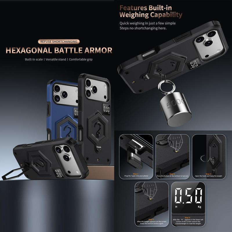 For iPhone 17 Pro Hexagon Armor Magnetic Holder Weighing Scale Phone Case(Red)