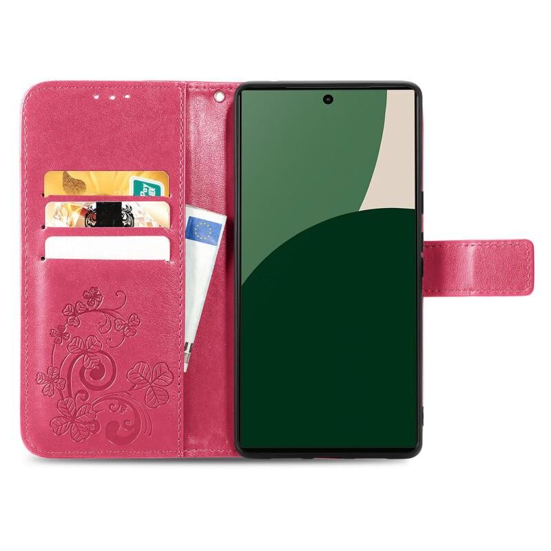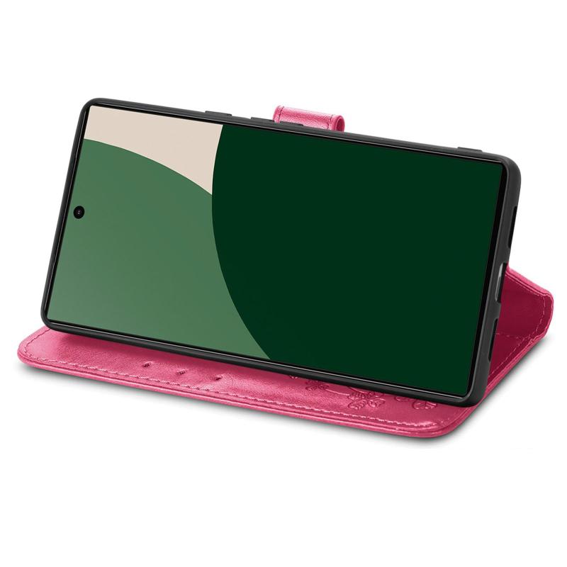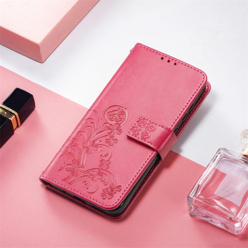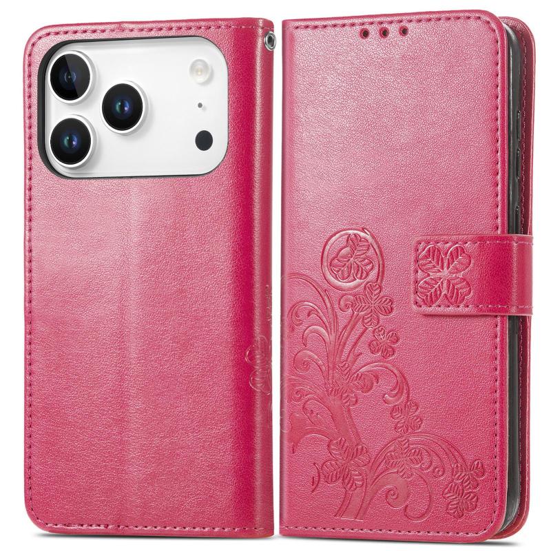 For iPhone 17 Pro Max Four-leaf Clasp Embossed Buckle Leather Phone Case(Rose)