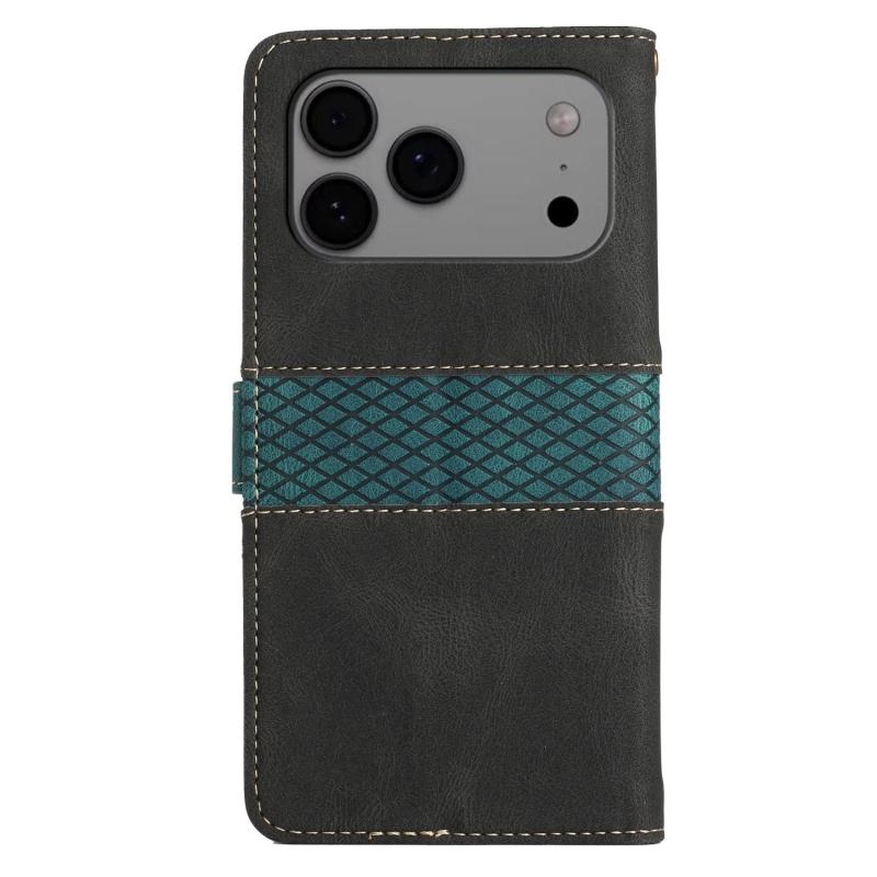 For iPhone 17 Pro Max Grid Stitching Leather Phone Case with Lanyard(Black)