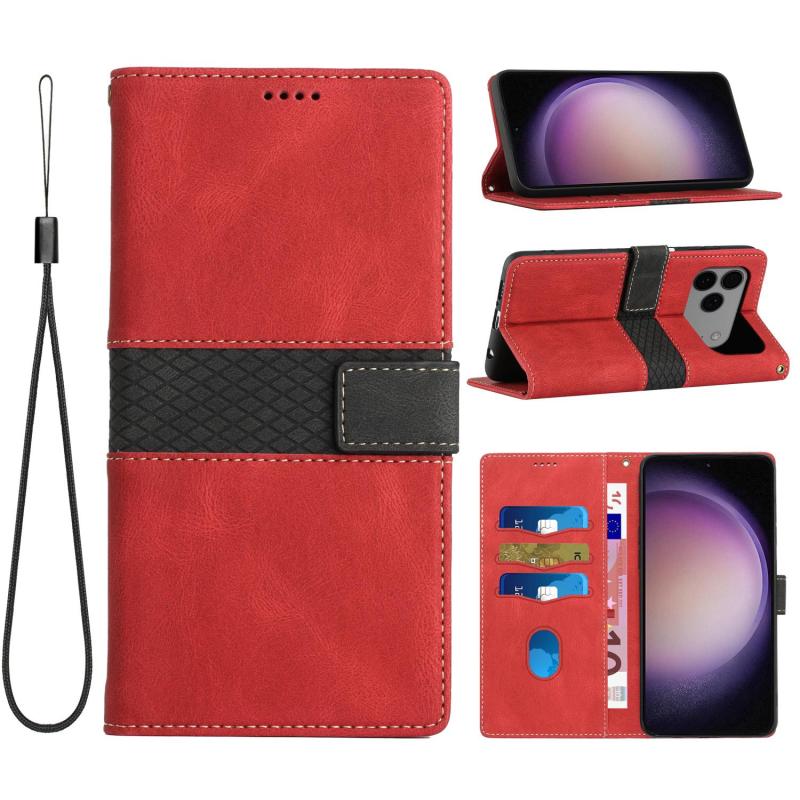 For iPhone 17 Pro Max Grid Stitching Leather Phone Case with Lanyard(Red)