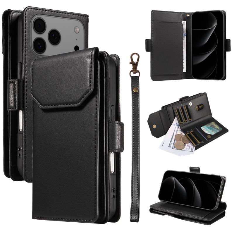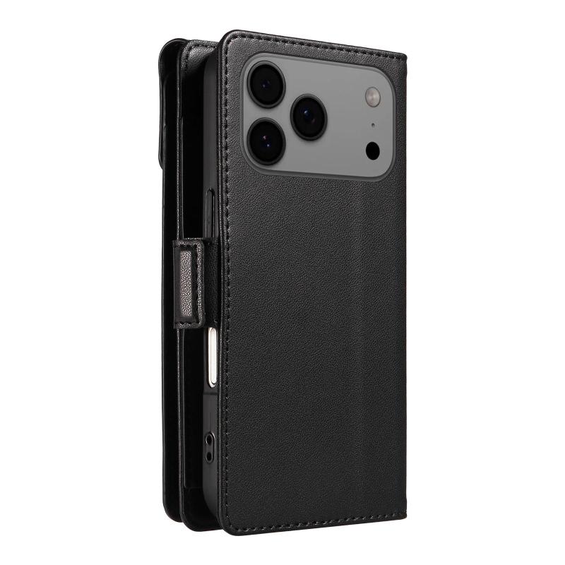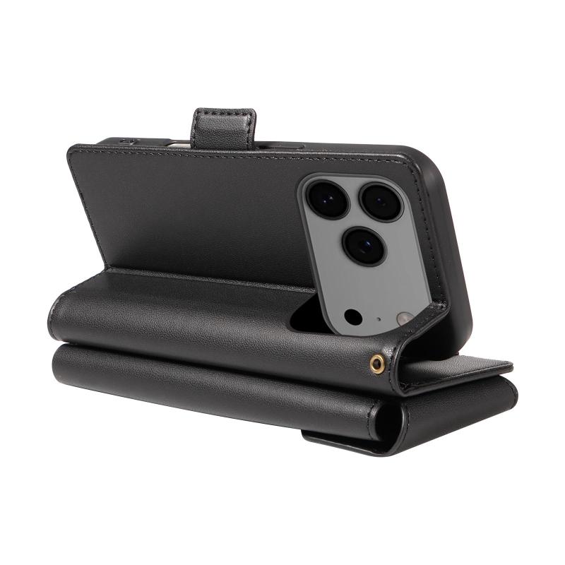 For iPhone 17 Pro Max Multi Card Wallet Leather Phone Case with Strap(Black)