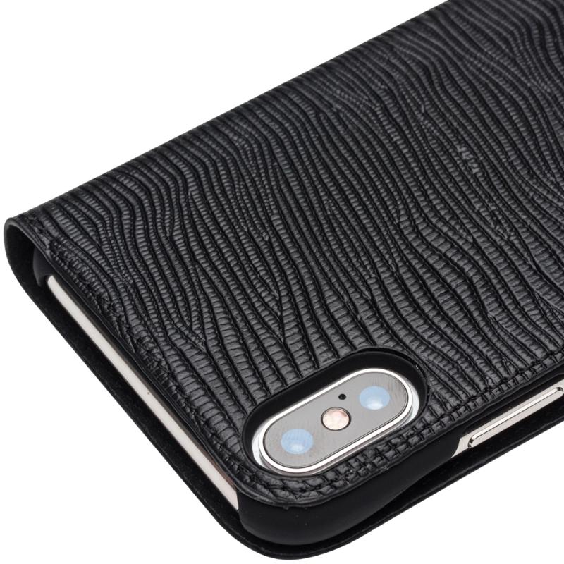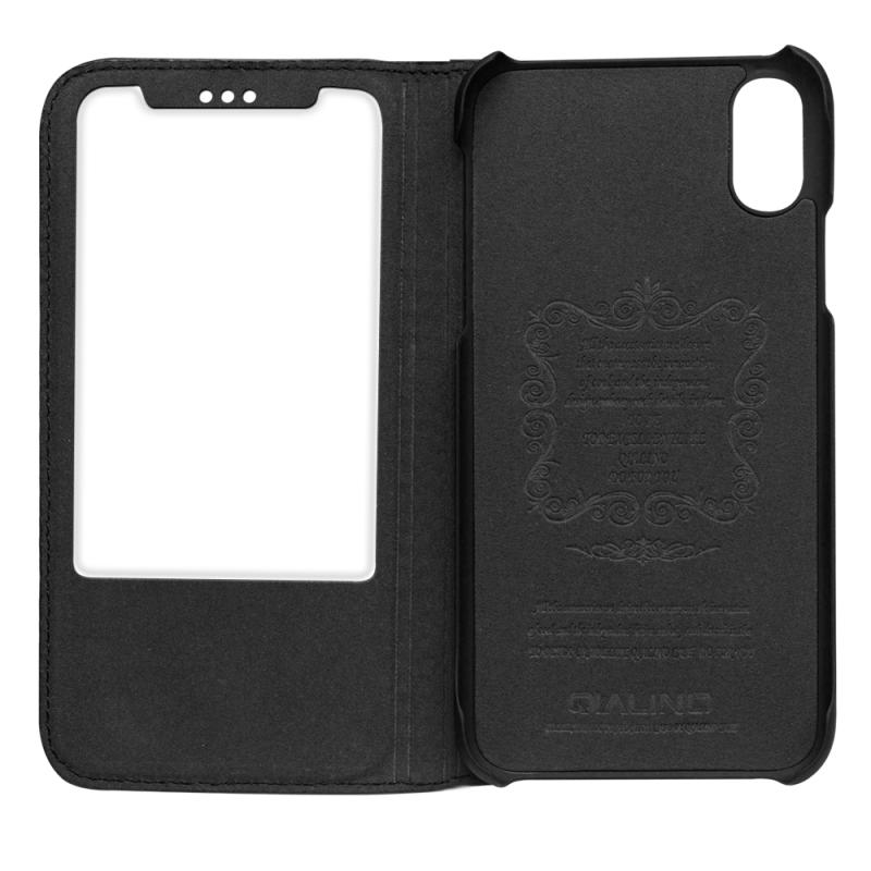 For iPhone X / XS QIALINO Lizard Texture Horizontal Flip Leather Case with Smart View Window & Sleep / Wake-up Function(Black) (QIALINO)