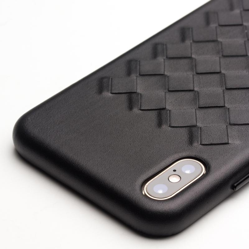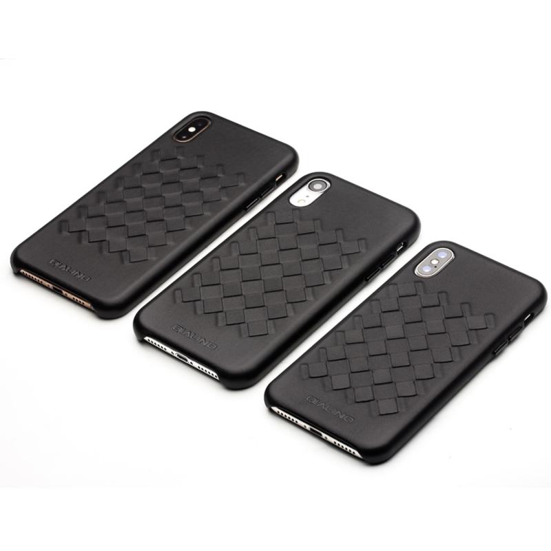 For iPhone XS QIALINO Shockproof Weave Cowhide Leather Protective Case(Black) (QIALINO)