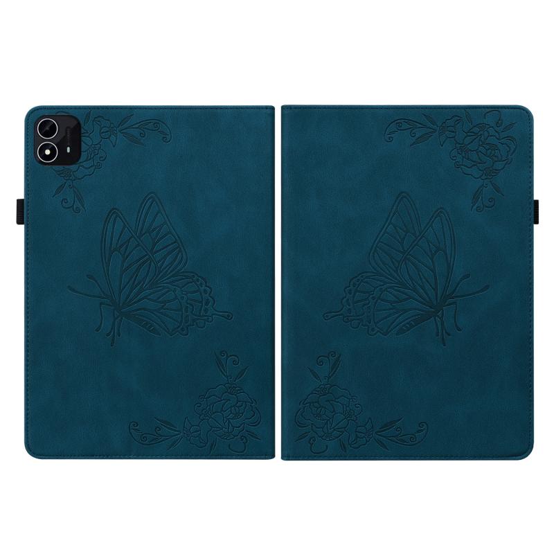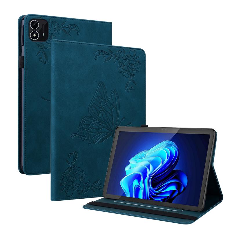 For itel Pad One 10.1 Butterfly Flower Embossed Leather Tablet Case(Blue)