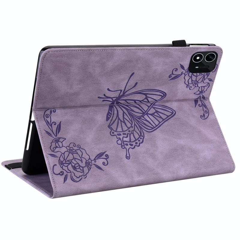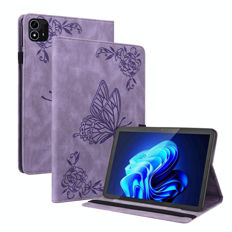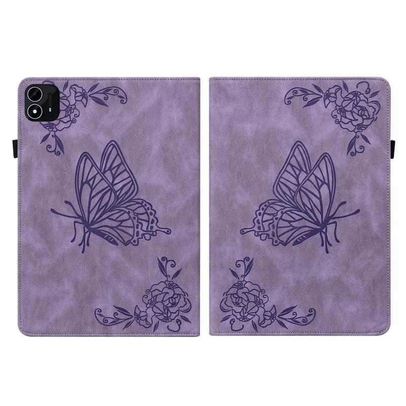 For itel Pad One 10.1 Butterfly Flower Embossed Leather Tablet Case(Purple)