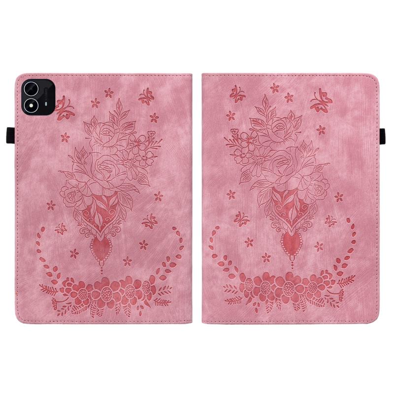 For itel Pad One 10.1 Butterfly Rose Embossed Leather Tablet Case(Pink)