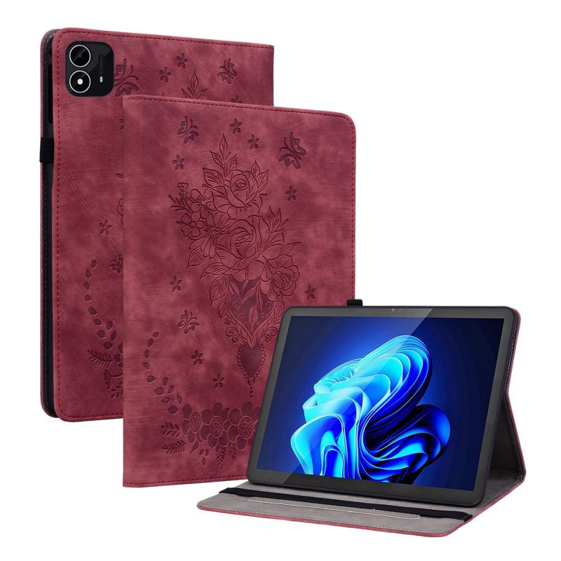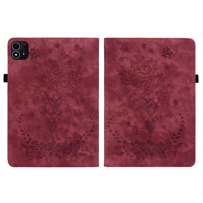 For itel Pad One 10.1 Butterfly Rose Embossed Leather Tablet Case(Red)