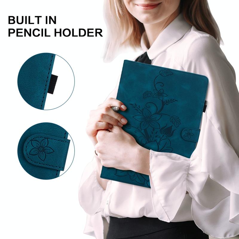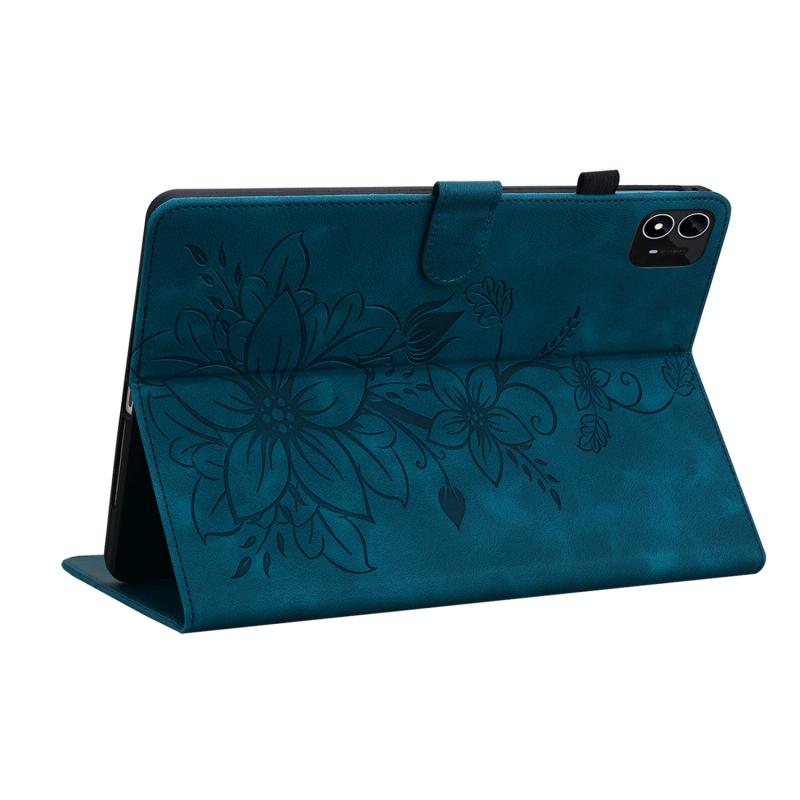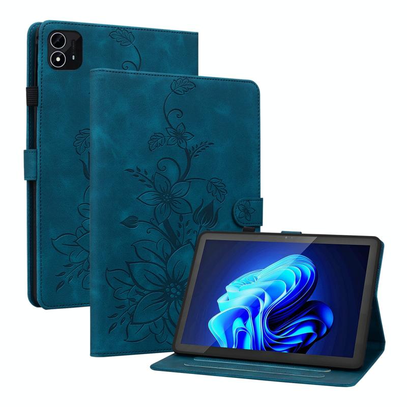 For itel Pad One 10.1 Lily Embossed Leather Tablet Case(Dark Blue)