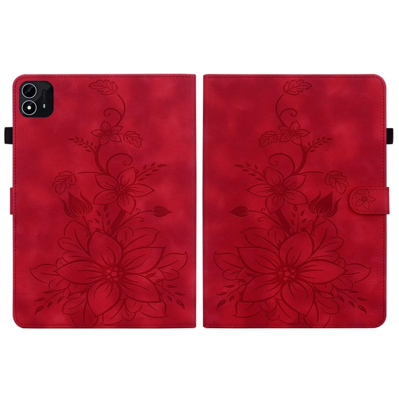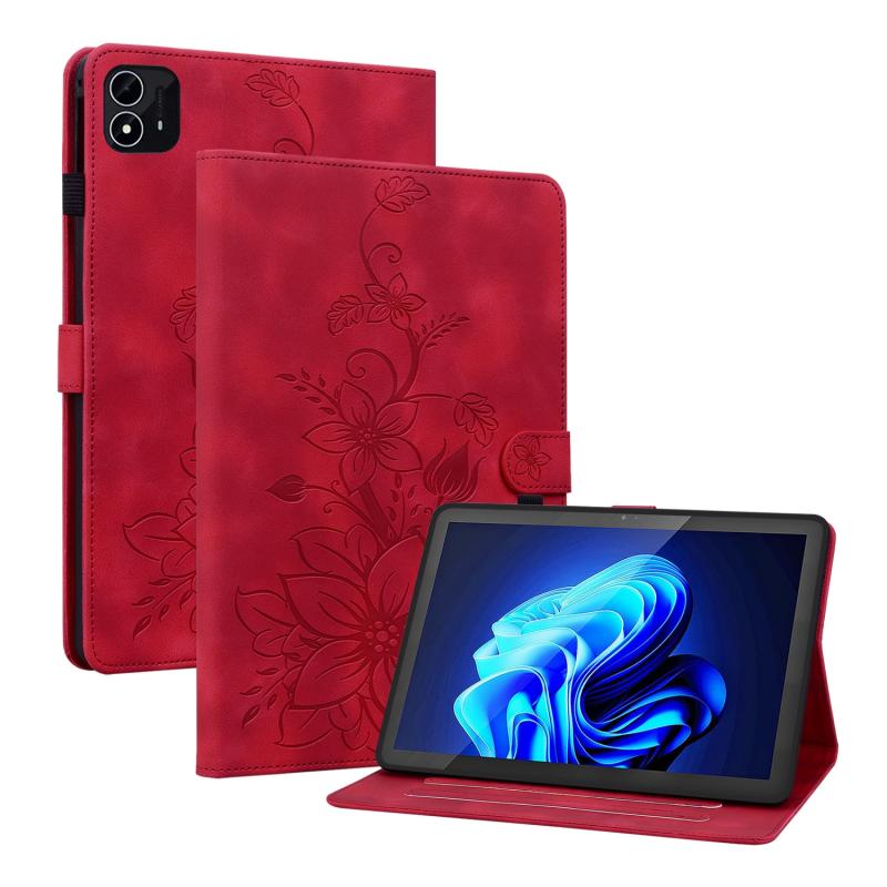 For itel Pad One 10.1 Lily Embossed Leather Tablet Case(Red)