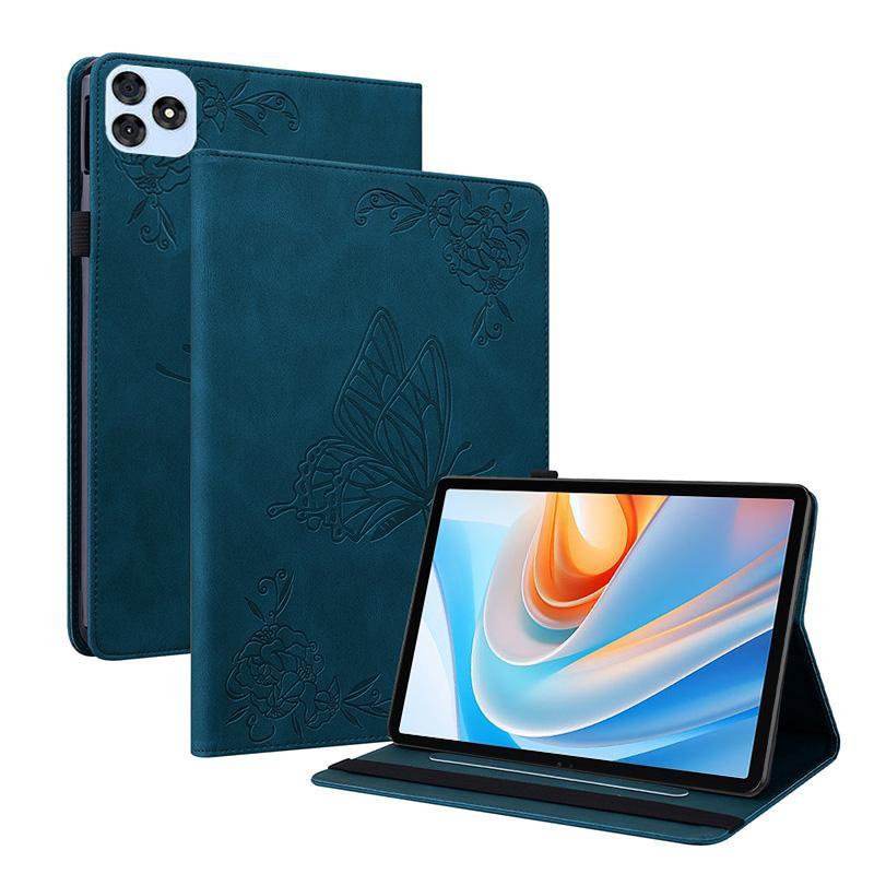 For itel VistaTab 30 Butterfly Flower Embossed Leather Tablet Case(Blue)