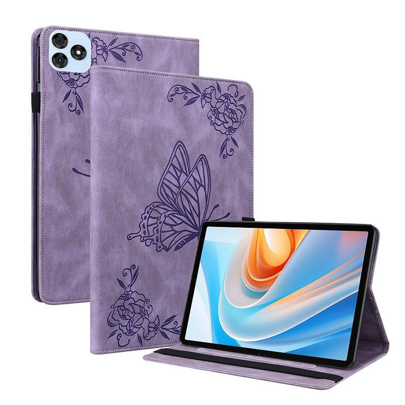 For itel VistaTab 30 Butterfly Flower Embossed Leather Tablet Case(Purple)