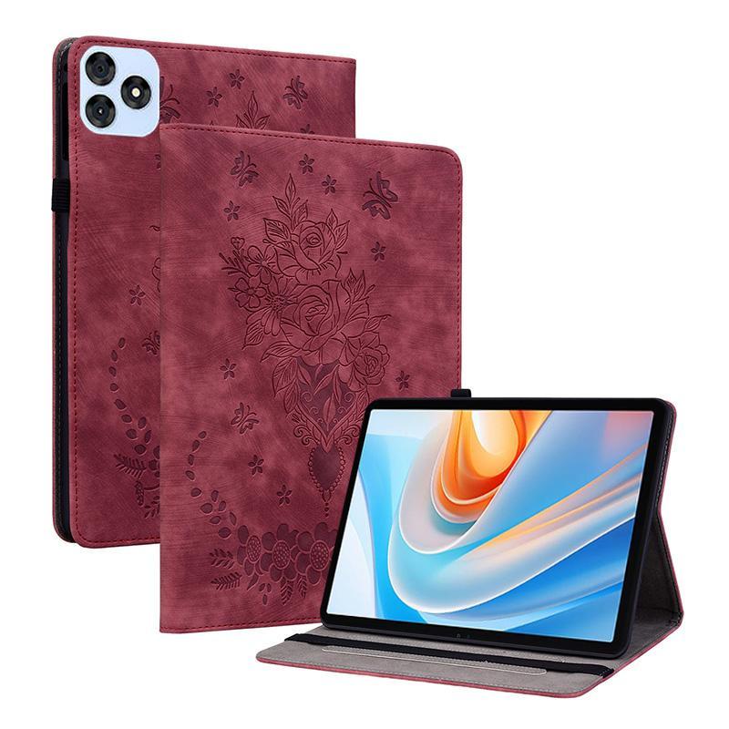 For itel VistaTab 30 Butterfly Rose Embossed Leather Tablet Case(Red)