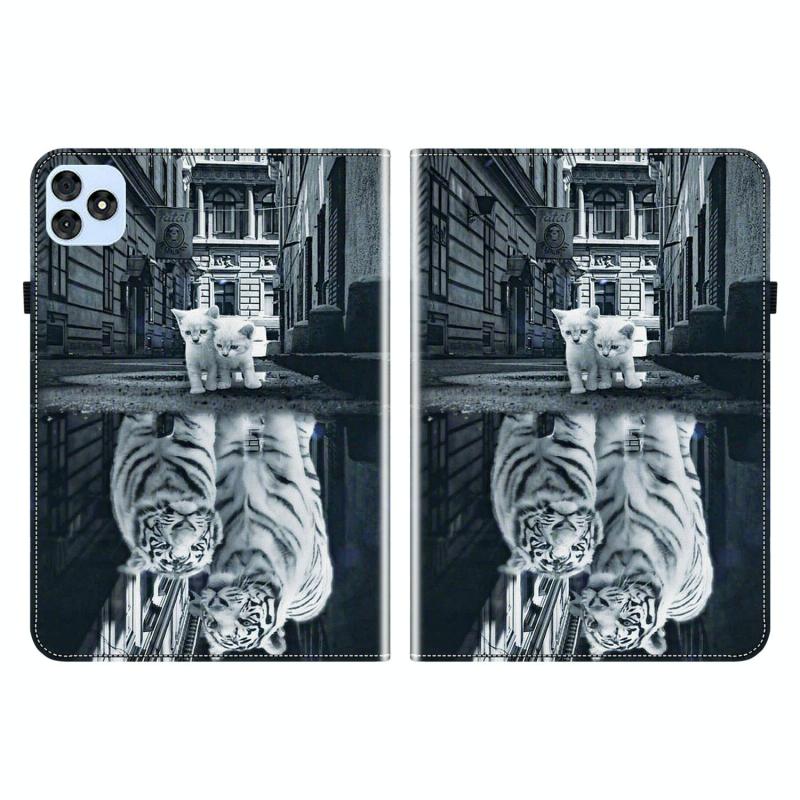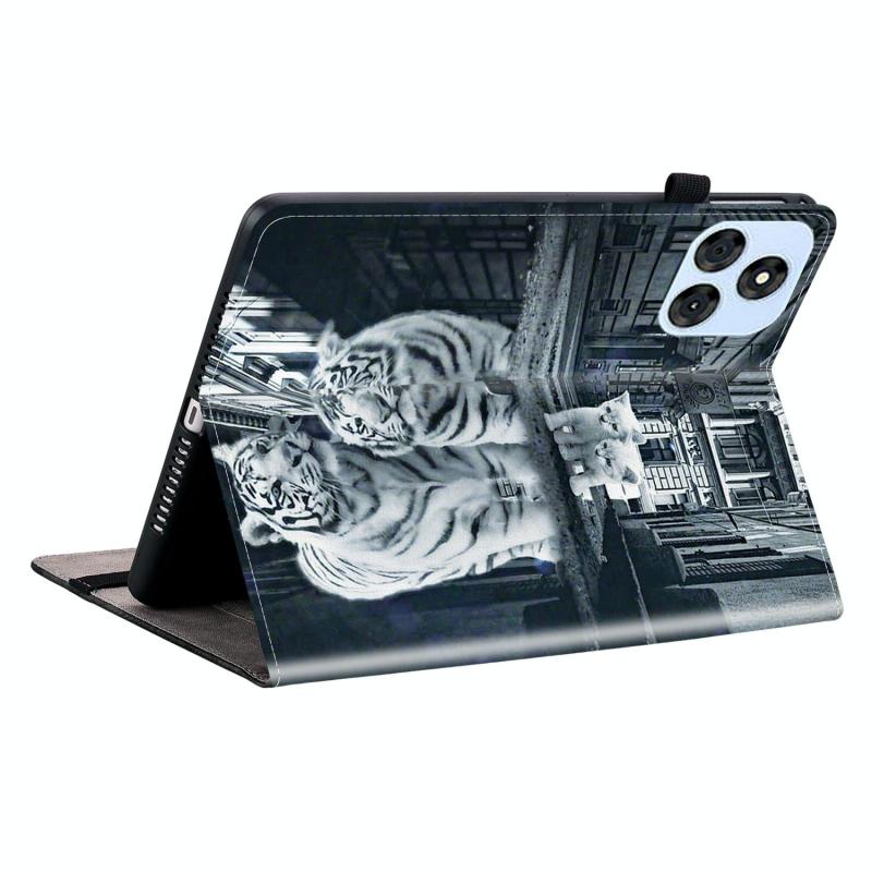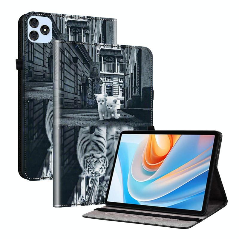 For itel VistaTab 30 Crystal Texture Painted Leather Smart Tablet Case(Cat Reflection Tiger)