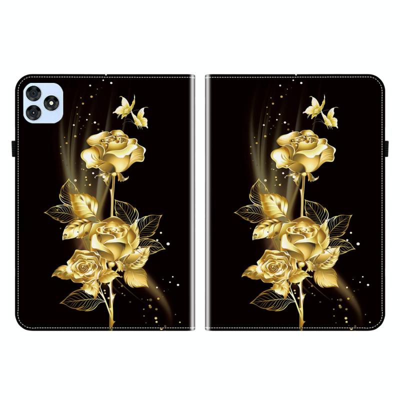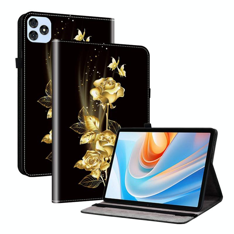 For itel VistaTab 30 Crystal Texture Painted Leather Smart Tablet Case(Gold Butterfly Rose)