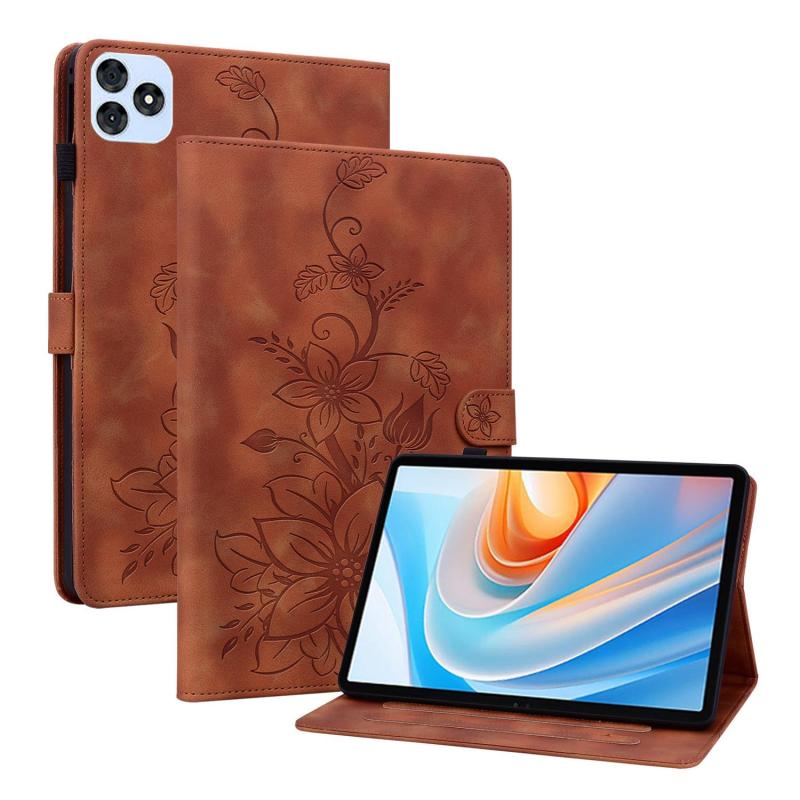 For itel VistaTab 30 Lily Embossed Leather Tablet Case(Brown)