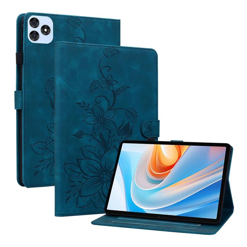 For itel VistaTab 30 Lily Embossed Leather Tablet Case(Dark Blue)