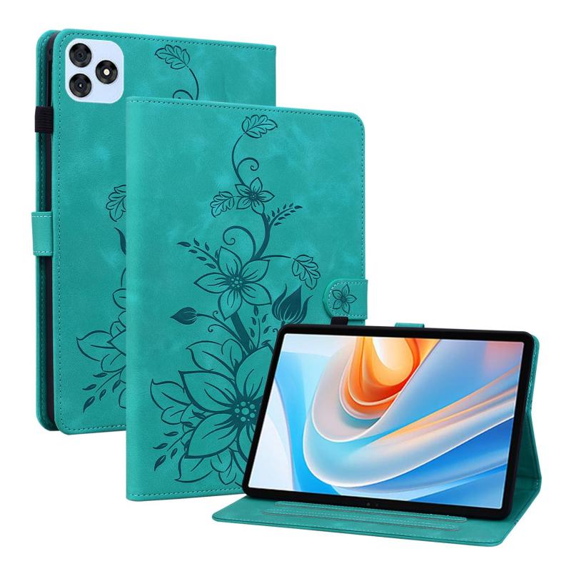 For itel VistaTab 30 Lily Embossed Leather Tablet Case(Green)
