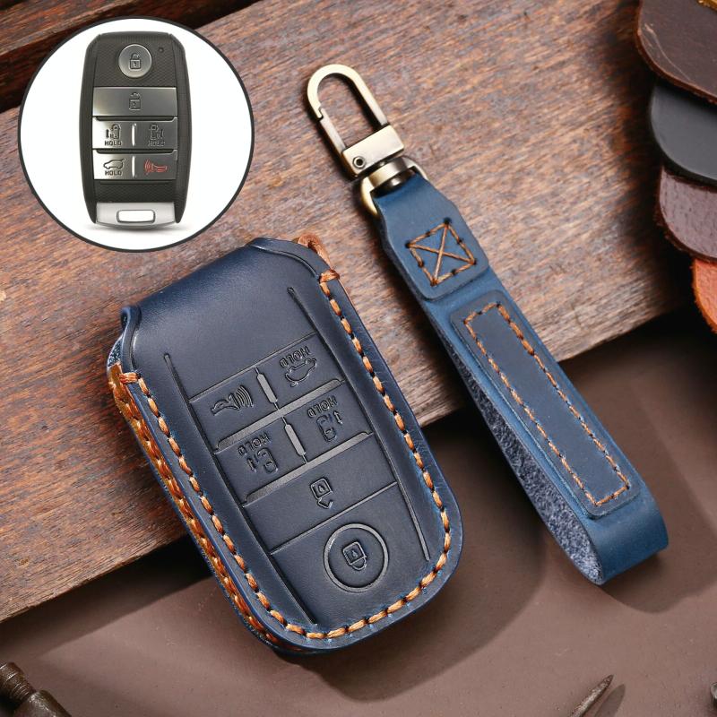 For Kia C134 6-button Hallmo Car Cowhide Leather Key Protective Cover Key Case(Blue) (Hallmo)