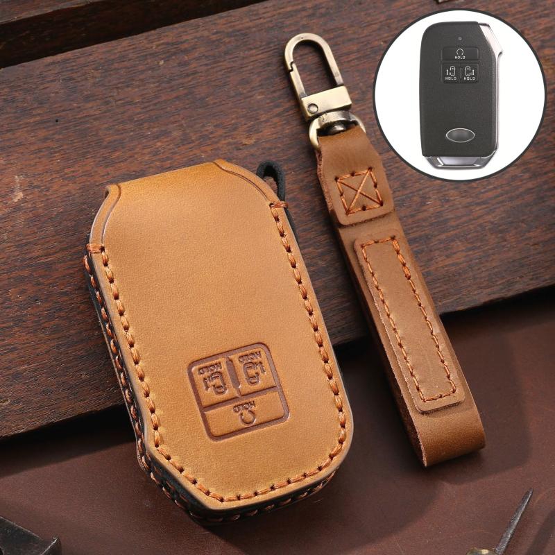 For KIA Carnival EX / SX Hallmo Car Cowhide Leather Key Protective Cover Key Case(Brown) (Hallmo)