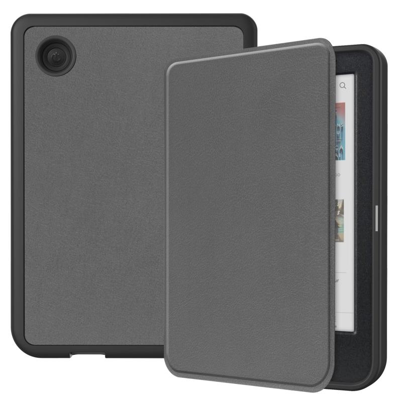 For KOBO Clara Colour 2024 / BW Solid Color Voltage Caster TPU Leather Smart Tablet Case(Grey)