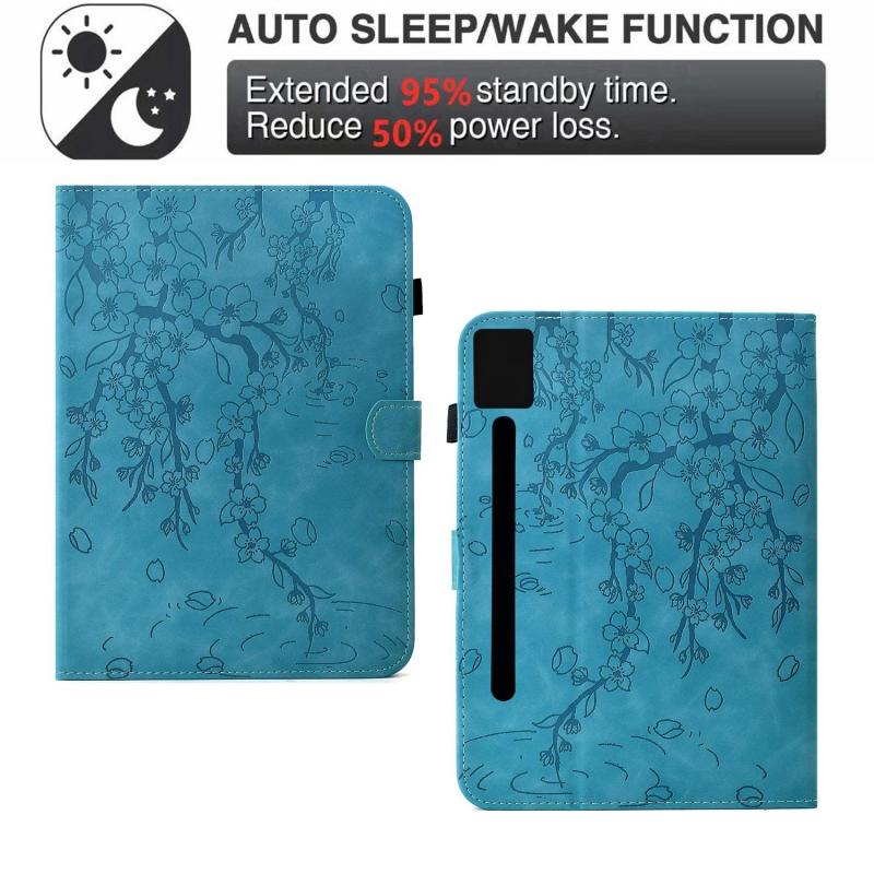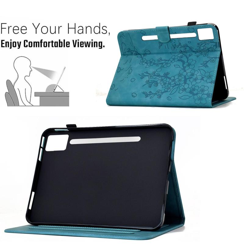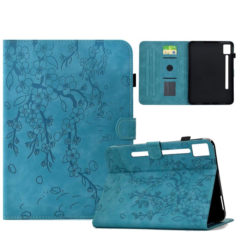 For Lenovo Idea Tab Pro / P12 2nd Plum Blossom Embossed Smart Leather Tablet Case(Light Blue)